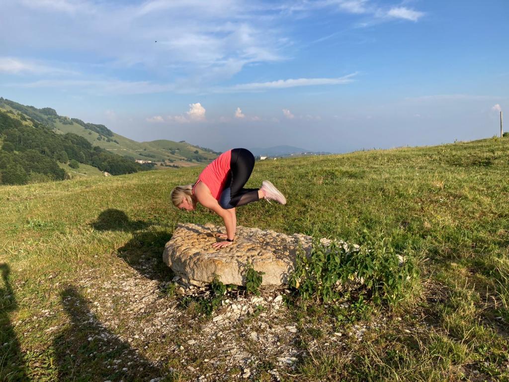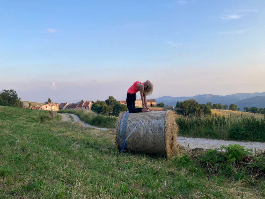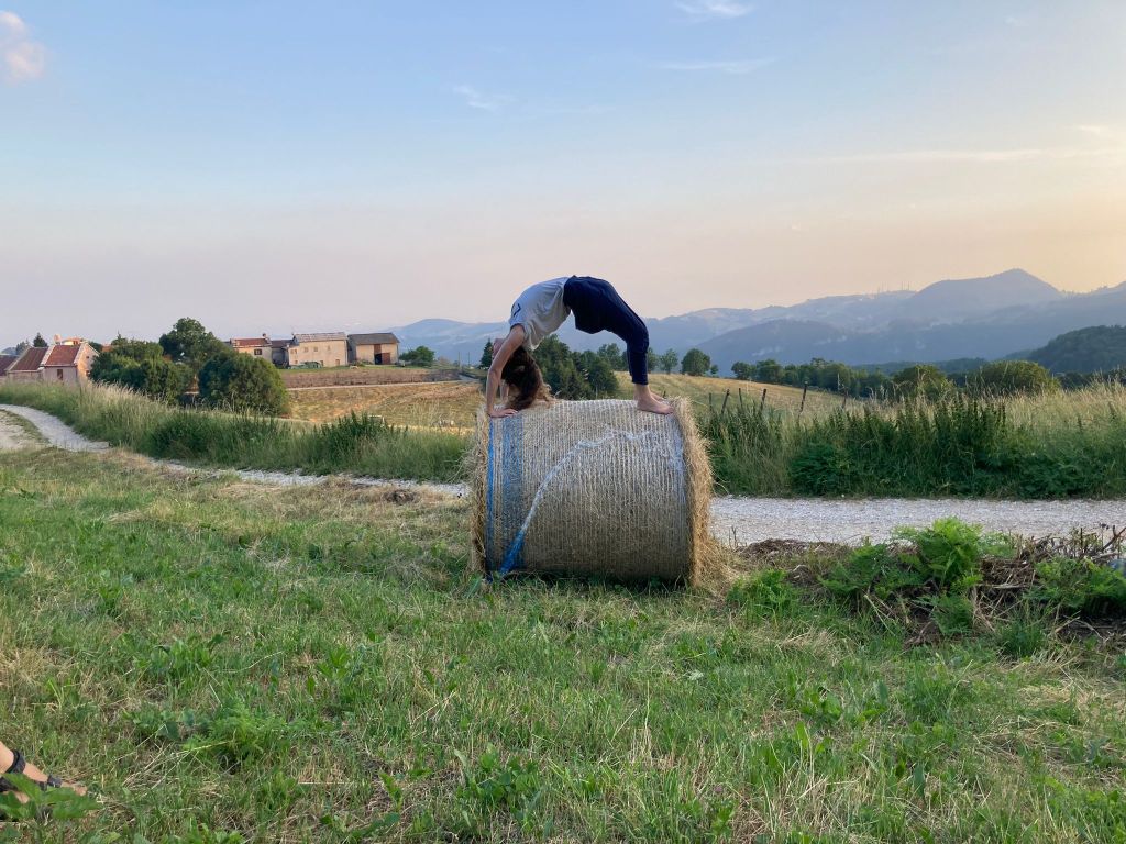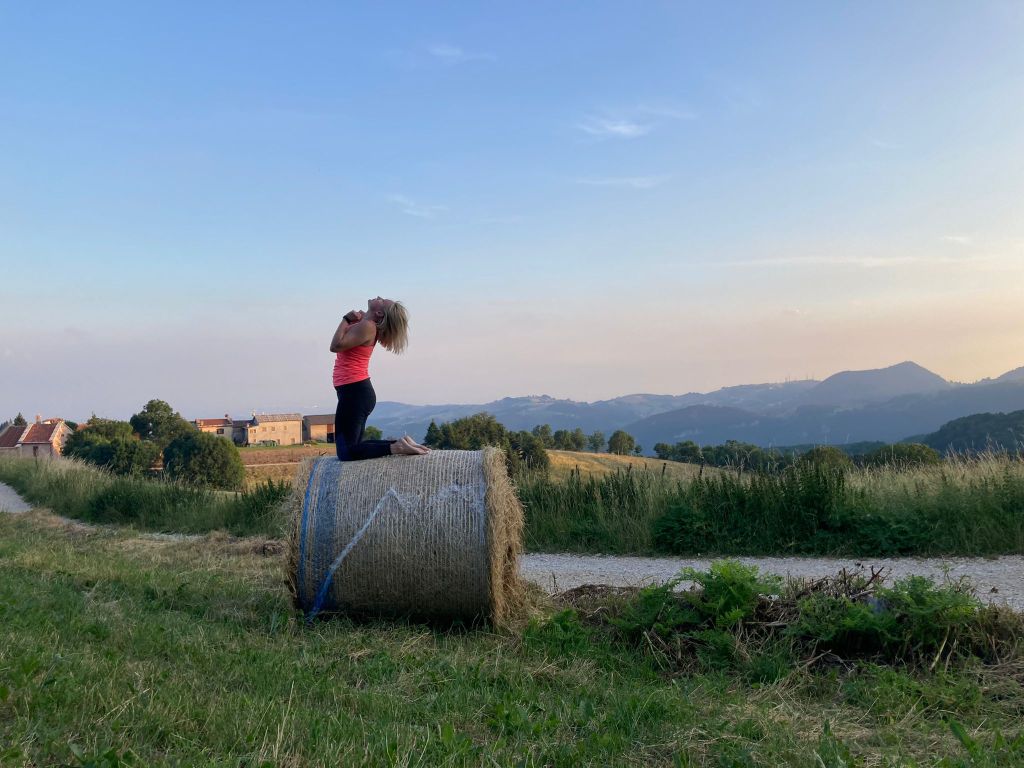 Certamente percepisco il senso giocoso che permea la scelta dei luoghi per l’esecuzione delle asana, ma intuisco anche la spontaneità unita alla creatività che la situazione, la natura e la condivisione hanno stimolato.
