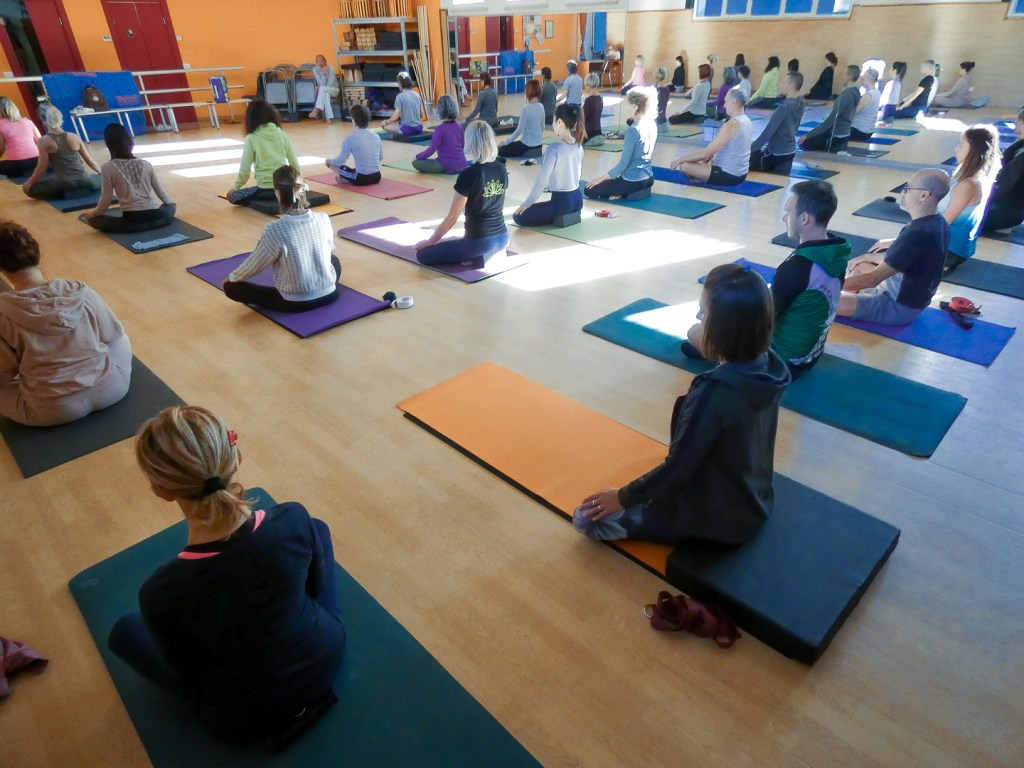 Comodo crocevia tra Brescia, Padova e Bologna, questo seminario veronese del maestro Renato Turla, fortemente voluto e organizzato con cura dal Centro Yakshamada, nella persona del senior teacher Jyotim Paola Polli, ha raccolto molte adesioni da queste città, che si sono aggiunte a quelle degli autoctoni. Data l’eterogeneità dei quaranta partecipanti provenienti da Verona, Padova, Brescia, Padova, Bologna e Ravenna – tra i quali c’erano senior teacher, insegnanti, istruttori e futuri istruttori, persone che praticano da parecchio tempo e altre invece con alle spalle solo qualche mese di pratica – sono state proposte asana abbastanza “semplici”. Qui, è chiaro, le virgolette sono d’obbligo, perché nessuna asana è semplice: è sufficiente introdurre un particolare nuovo o diverso sul quale porre l’attenzione, oppure spostare il punto di osservazione, e l’asana cambia completamente, è come nuova. Per cui anche Adhomuka, Urdhvamuka, Purvottanasana o Ustrasana non sono più le stesse, ed è come affrontarle per la prima volta. «La cosa importante è praticare con curiosità, e la curiosità non ha aspettativa.» (M° R. T.)